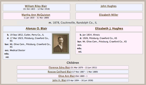 Florence Edna, Olive Ann, John H. and Roscoe who died in infancy. Dr. A. O. Blair