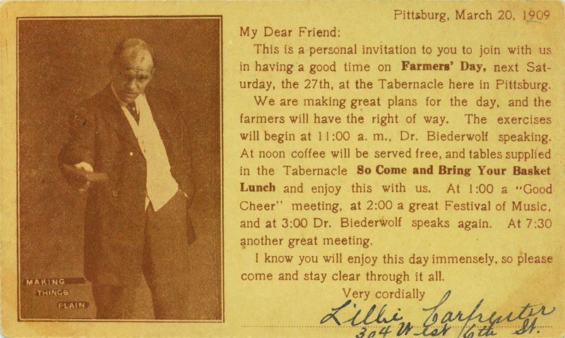 Invitation Postcard for "Farmers' Day" March 27, 1909 - Postmarked March 24, 1909
