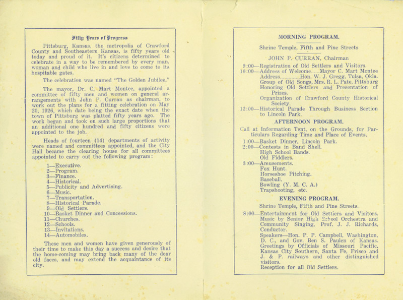 Pittsburg, Kansas Golden Jubilee Activities Program