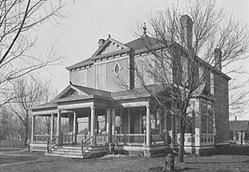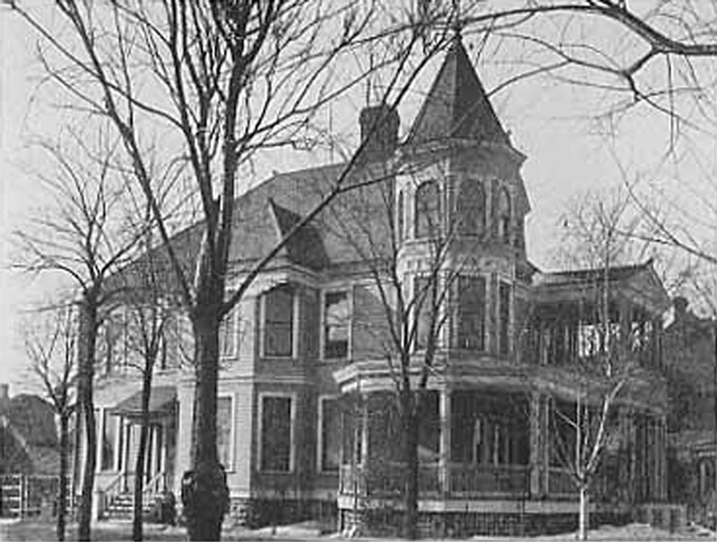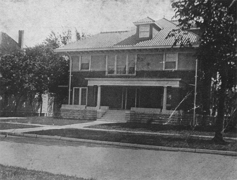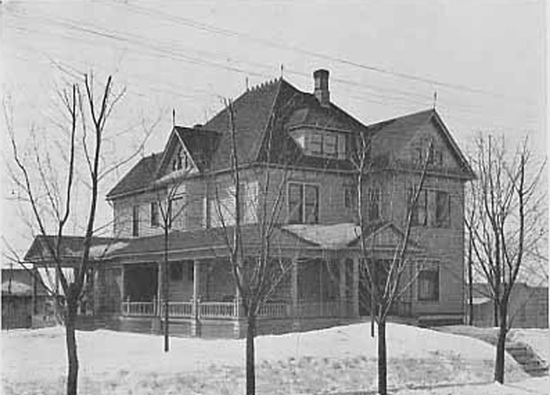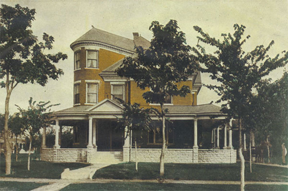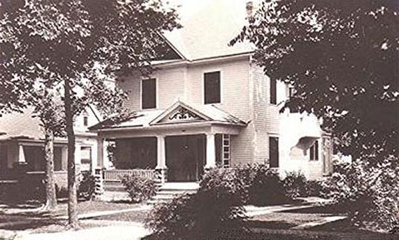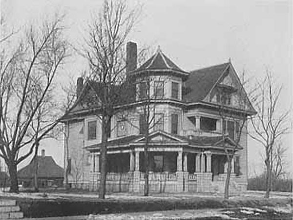 This home was built in 1886 by one of the cities founders, Franklin Playter. At the time, this house was on the edge of the Playter addition to the city and was surrounded by open land. He lived in the house until 1892 when he sold it Frederick Gaskell and moved into the Stilwell Hotel. It was later sold to J. A. Gibson, president of the Standard Ice and Fuel Company, and his wife E. Louise Gibson, chair of the home economics department at what is now Pittsburg State University. A large wrap around porch was added to the front of the house extending from the stairs around to the east side. Photo courtesy of Dorothy Benskin, Crawford County Genealogical Society |