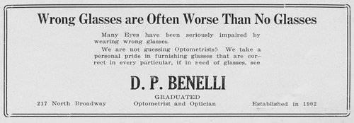 D. P. Benelli Advertisement from 1923 Pittsburg High School Yearbook |