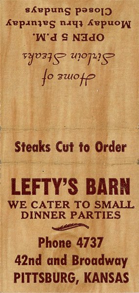 matchbook cover - date unknown