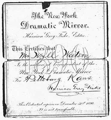 New York Dramatic Mirror Correspondent Card of Mr. Wylle Watson