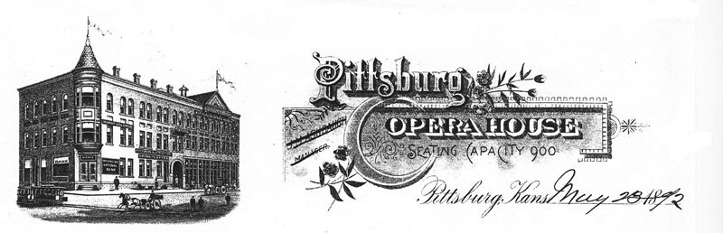 The Opera House soon became a major stop for all traveling circuit shows with reviews being presented in The New York Dramatic Mirror, an industry magazine. Pittsburg even had its own correspondent, Mr. Wyll Watson, who would send his observations back to New York via telegraph or mail to be published. This allowed Pittsburg to have the top stage productions; lectures and artists of the day stop and entertain the citizens, including John Phillip Sousa and his band on 26 Jan 1901. The music was usually supplied by local musician Frank S. Botefuhr and his Orchestra. Scott Joplin who according to his family oral history stated that while in Pittsburg his manager left with all his money and receipts leaving him stranded and not able to pay his boarding house bill. So he left a trunk filled with unpublished music manuscripts, photographs and letters as collateral but never came back to retrieve it. The story was told by his widow Lottie Joplin in 1949 but has never been confirmed. So who knows there could be a trunk in someone’s attic in Pittsburg full of rare Scott Joplin treasures.