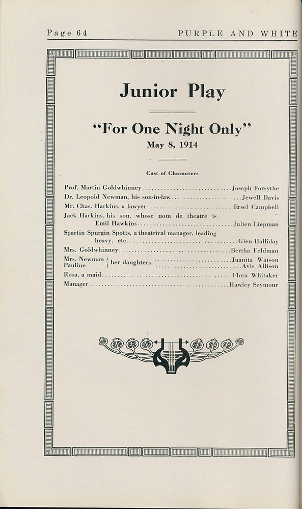 Esther Stewart, Clara Seleman, Kathryn Nesch, Peter J. Quinn, Maurine Hiatt, LaVern McCall, John Ash, Geraldine Ott, Charles Robinson, Bernie Goodrum,Eleanor Smith, Fritz Liepman |