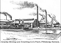 In the summer of 1890, some men came to Pittsburg looking for an area to build a silver smelter due to the cheap coal. The men talked to the Pittsburg Commercial Club who agreed to enter into a formal contract with the company provided that they refine 20 tons of ore daily for three years. The Commercial Club built a building on a 5 acre tract of land north of Pittsburg approximately in the area today between North Broadway and the bypass along 25th street, donated the land and gave an extra $2000 for the construction of the furnaces. The smelter company agreed to install $16,000 worth of equipment and after some delays, opened in September of 1891. The Pittsburg Short Method Gold & Silver Smelting & Refining Works was in operation for only four years. Even though it had been making a profit and paying dividends to its shareholders, it had trouble keeping operating capital mainly due to one of their purchasing agents embezzling most of its money and then skipping town.