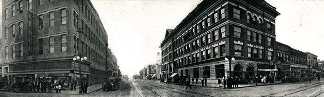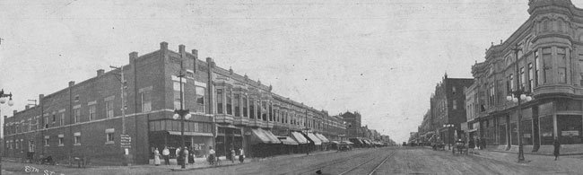 | Eighth and Broadway Looking North postcard - image 1887 photo by Elmer E. Long |