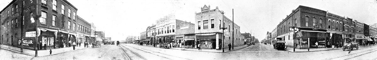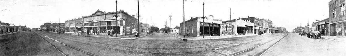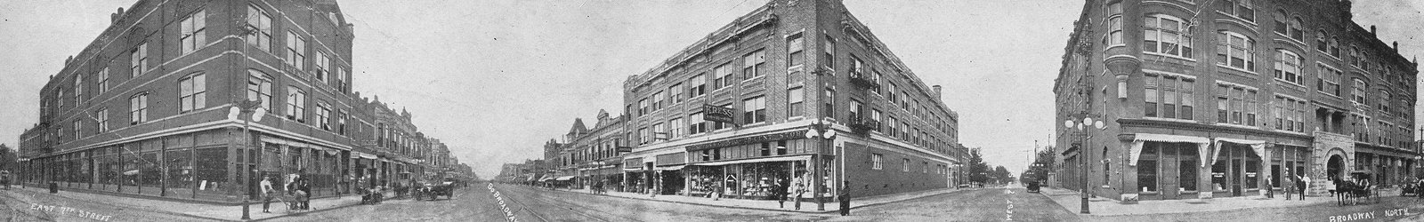 | Intersection of First and Broadway looking West Panoramic Image - 1915 Prosperous Pittsburg Pictorially Portrayed, 1915 |