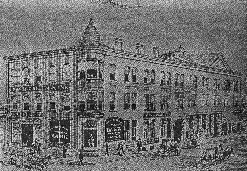On the Northeast corner of Fourth and Broadway sits one of the oldest structures in Pittsburg. The National Bank Building, as it is still commonly called even though the bank hasn’t been located there since 1966, wasn’t always just a bank with offices on the upper floors. In the beginning the building was filled with the sounds of voices singing the latest songs and men and women putting forth their best dramatic or comedic dialogues, the sounds of laughter reverberating off the walls. Under the Bedford limestone façade and the white paint, this building housed the first permanent home of entertainment in Pittsburg, the Rhodes Opera House. By the fall of 1887, several things were beginning to be discussed on the streets of the decade old town. One was the need for a sewer system and the other a need for an opera house. Franklin Playter, one of the founders of Pittsburg and a Chicago associate, J. Foster Rhodes, brought a plan to the city that they would invest and build an opera house on property already owned by Playter at the northeast corner of Fourth and Broadway if the city would build a sewer system. The sewer system they said was needed to assure that the facility would be of the utmost elegance and modern capacity.