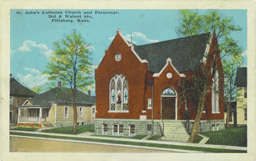 St. John's Lutheran Church was founded in Pittsburg in 1880 with the first building being but in 1885 at 607 N. Joplin. In 1919, the First Congregational Church merged with the United Presbyterian Church and their building on the northwest corner of Third and Walnut was purchased by St. John's. The current building on the same site was dedicated in 1956.