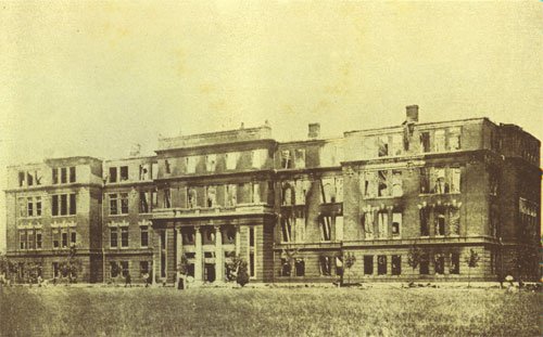 Back of Russ Hall the Morning After the Fire, June 30, 1914