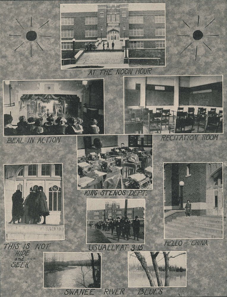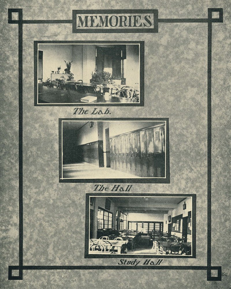 On the second floor were the auditorium balcony, study hall, 15 classrooms, the library and laboratories for physics, chemistry and biology.