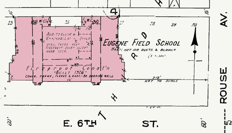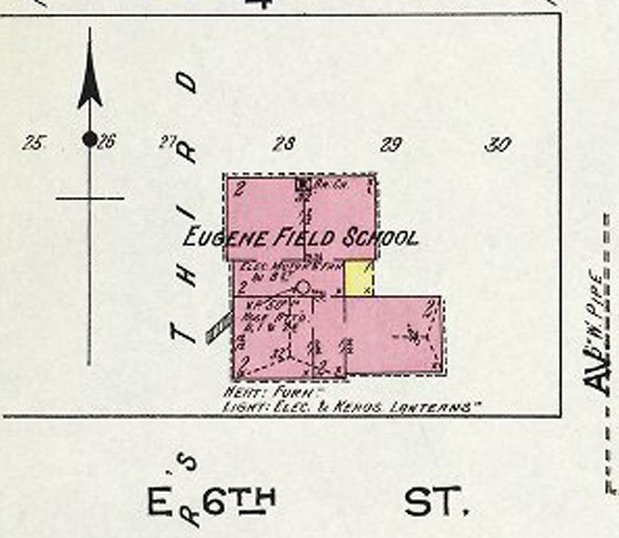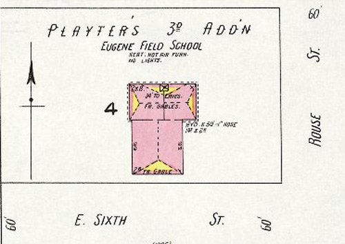 The East School was built in 1891 on the north side of East Sixth street between Rouse and Tucker at a cost of $4,997 by local contractor A. L. Matteson. Construction began in June 1891 and was completed by September 1891. The school was renamed Eugene Field School at the beginning of the 1901 school term. By 1903 enrollment at the school had increased to 353 students with pupils seated 3 to a bench. As a temporary solution the school district rented the Swedish Church for overflow at 5th and Fairview. For a more permanant solution, the school board asked the voters in Pittsburg to approve $10,000 to build an addition onto the building, more than doubling the size of the school. After the enlargement the elementary school had a student capacity of 40, but Pittsburg continued to grow in population. In about 1913 once again the school became overcrowded so another addition was added. In 1926, a new two-story brick building