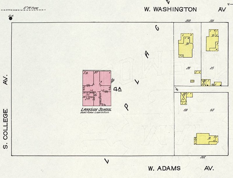 was built in 1904 at 709 S. College with new students occupying the school that fall term. The school building, built by local contractors Drunagel & Stanneart, cost $30,000 and had 6 rooms. Martha Sandford was the first principal of the new school and also taught the 6th grade. Other first year teachers included Edna Jones, 7th grade; Frances Coffin, 4th and 5th grades; Pansy Armstrong, 3rd and 4th grades; Donia Embree, 2nd and 3rd grades and Josephine Brown, 1st and 2nd grades.