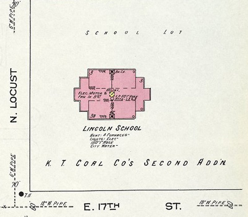 Lincoln school began as the North School and was built in 1889 on land secured from the Kansas & Texas Coal Company at a cost of $25,000. The new 12 room school replaced the brick school building at 8th and Broadway, which had been built in 1884. In 1901 the name was changed to Lincoln School. As the school continued to grow 2 overflow buildings were built that could hold an additional 100 students in 1914. A Parent Teacher Organization was formed with parents and teachers from the school in May 1915. In February of 1926, the citizens