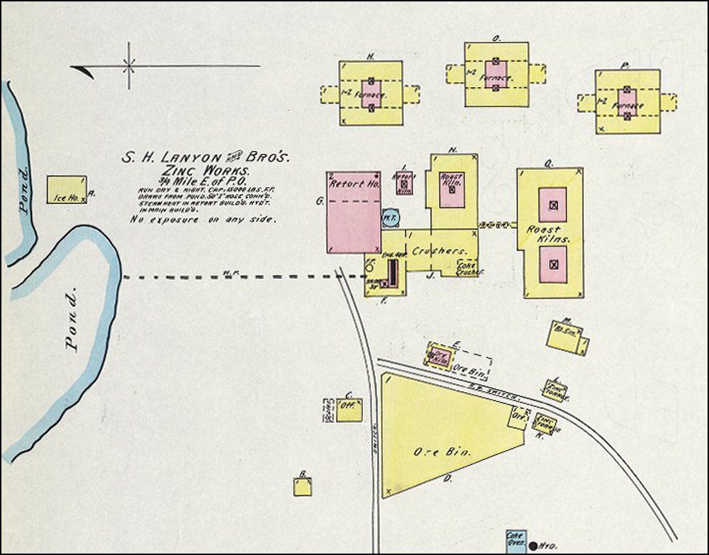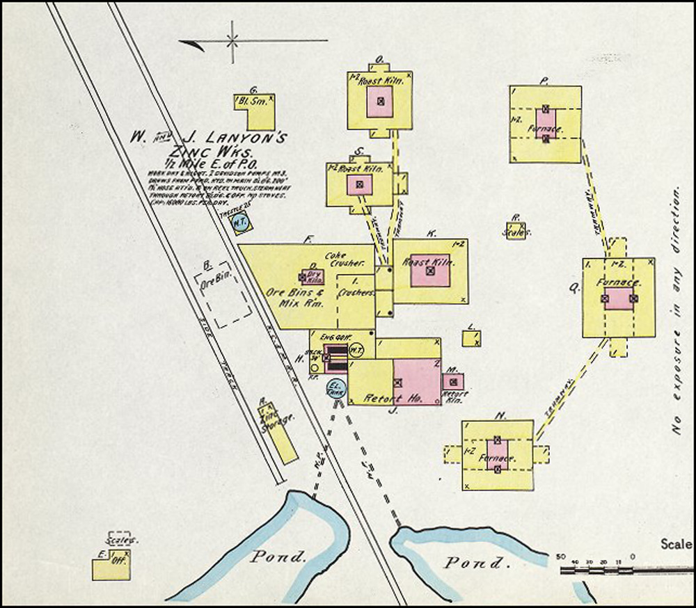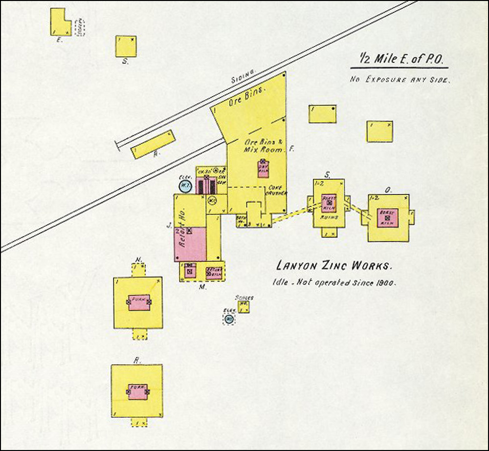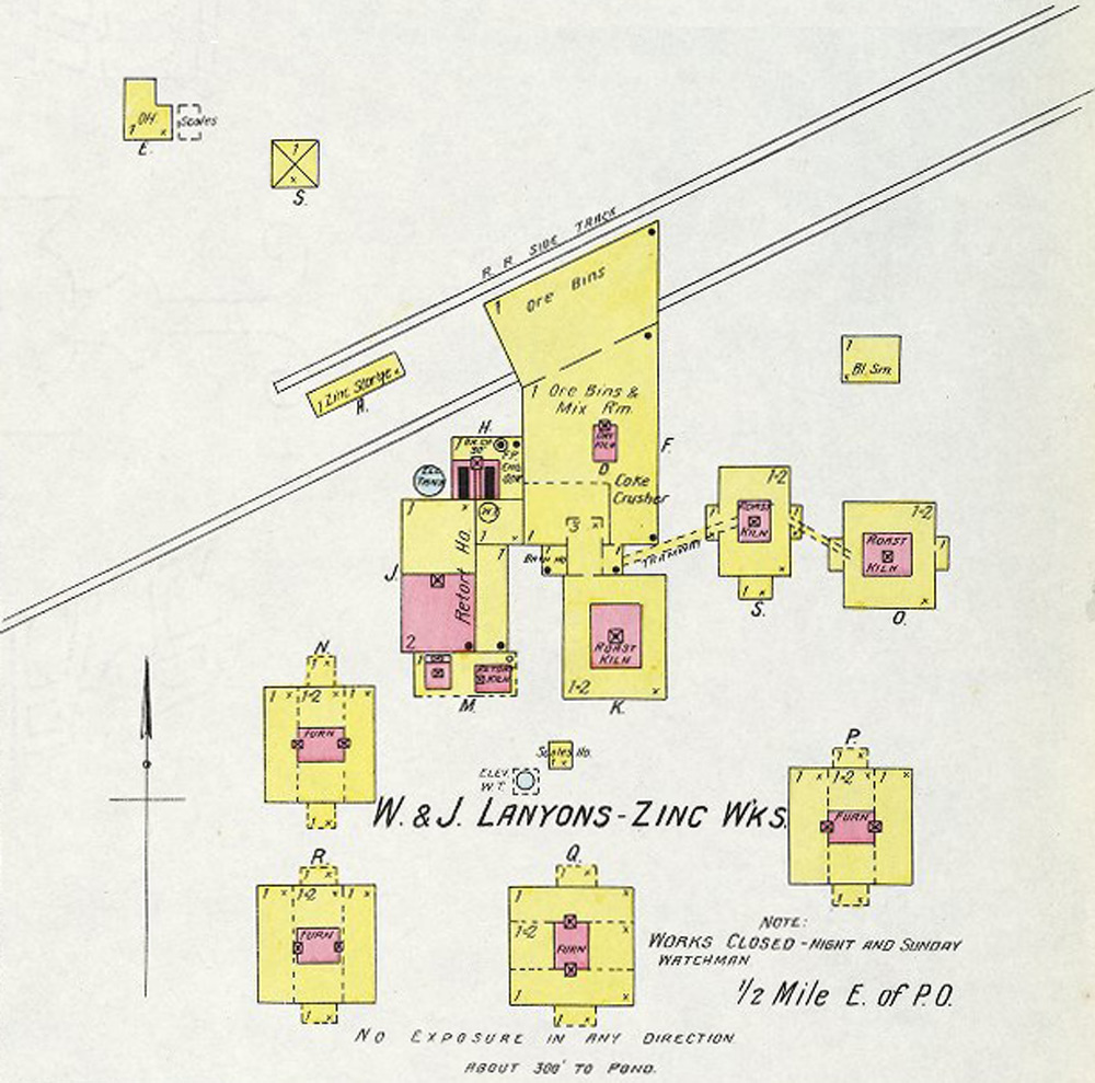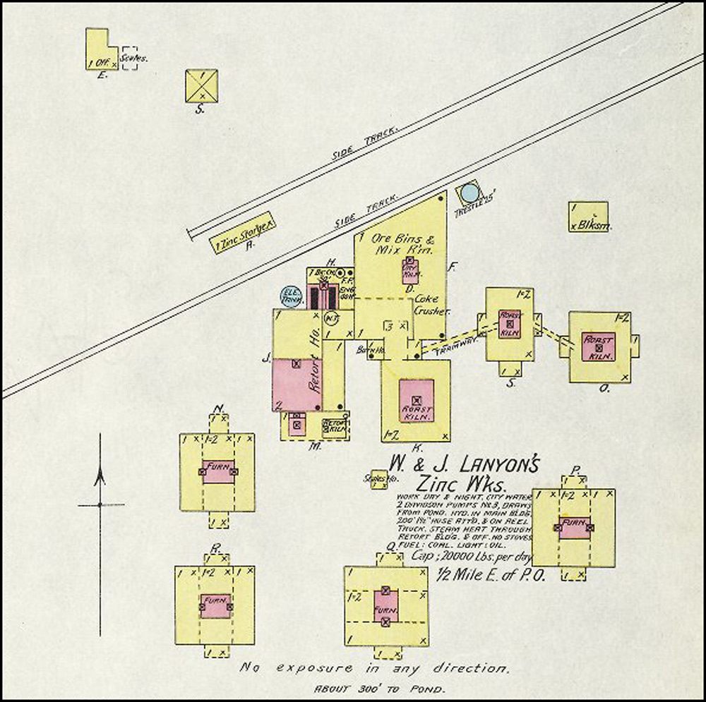 British born Robert Lanyon arrived in the Pittsburg area in the winter of 1878 from his home in La Salle, IL to research the area for the possibility of building a zinc smelter. After finding the area near Pittsburg suitable for the industry due to the abundance of coal, he and his brother S. H. Lanyon built a smelter and named it the Robert Lanyon & Co.'s Zinc Works. It was located just east of the Pittsburg city limits at the time in the area south of Second and Joplin. It began with 2 furnaces, one of which was an 8-kiln Belgian type that had been dismantled and brought to Pittsburg on a train from their smelter in Illinois. In 1880 S. H. Lanyon decided to leave the partnership with his brother and build his own smelter just east of Robert’s called the S. H. Lanyon and Bro. Smelter. That same year William Lanyon, Robert and S. H.’s brother, came to Pittsburg with his son Josiah and opened the W. & J. Lanyon Smelter a little further east in the area around East Fourth where Mission Clay and Schlanger Park is today. Edwin V. Lanyon, Josiah’s son came to Pittsburg a couple of years later and helped his father manage the smelter until 1897. Edwin later became President of the National Bank of Pittsburg and President of the Pittsburg Zinc Co.