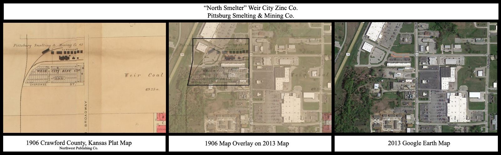 Smelting operations were a dirty business and contaminated the land around it with high levels of lead, sulfur, cadmium and arsenic making the area barren and very little vegetation growing. Some of these areas have been cleaned up through million dollar inititaves where the contamination has been contained or removed and in some cases covered over with concrete and asphalt. One of these areas in Pittsburg is where the Weir City Zinc Smelter was in the vicinity of 28th and North Broadway. The land was cleaned up and a shopping center with a Home Depot was built on the site in 2005.
