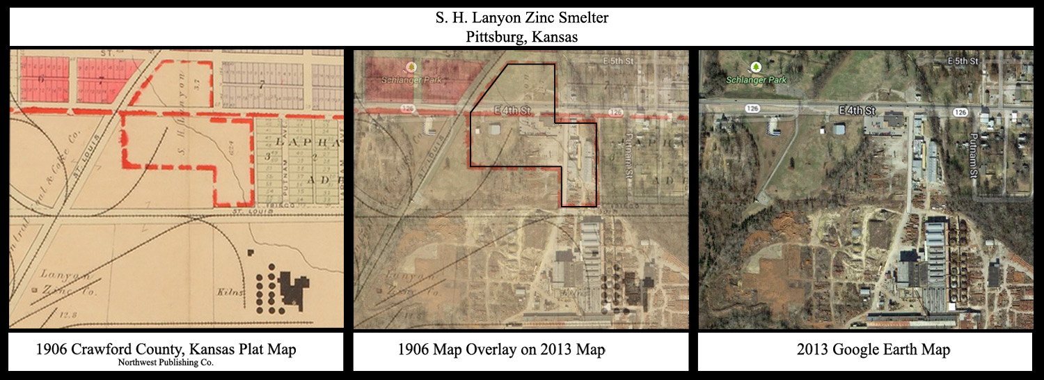 By 1896, the Cherokee-Laynon Smelter Co. through purchase or lease consolidated all of the smelters in Pittsburg except the W. & J. Lanyon Smelter. After the natural gas fields were discovered in the Iola, KS area in 1895, Robert Lanyon closed his smelter at 2nd and Joplin and opened a smelter in Iola. By 1900 because of the abundance of cheap gas and improvements in gas smelting furnaces all the smelters in Pittsburg were closed. Within a couple of years so many businesses were using gas in Iola, that the pressure became so bad that the smelters were having trouble just firing up completely so they could run at full capacity. That coupled with zinc prices on the rise, coal-fired smelters like the East Smelter and the North Smelter were reopened in Pittsburg by the Lanyon Zinc Co. and Cockerill-Zinc Company.