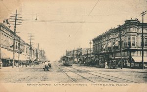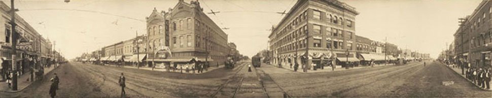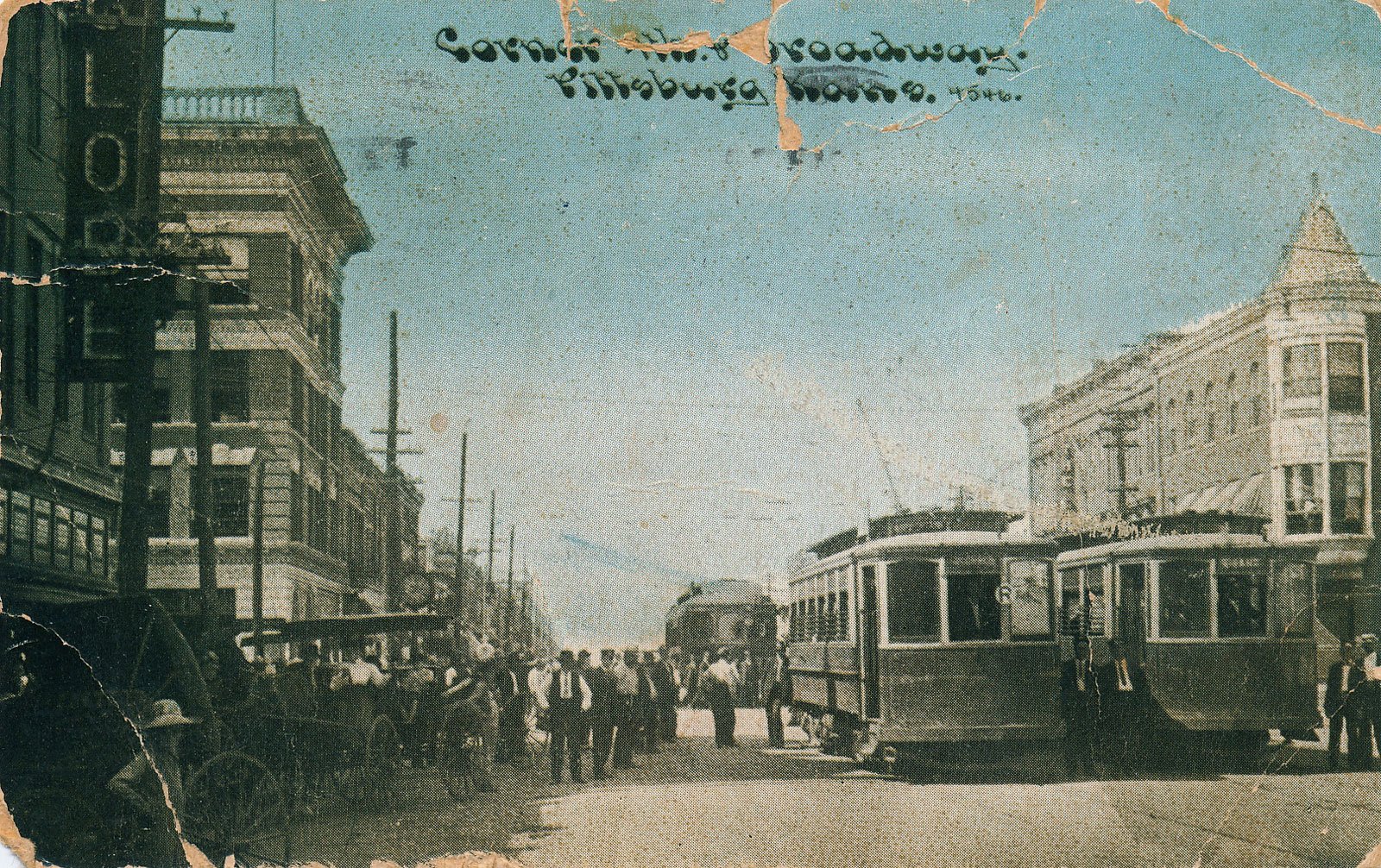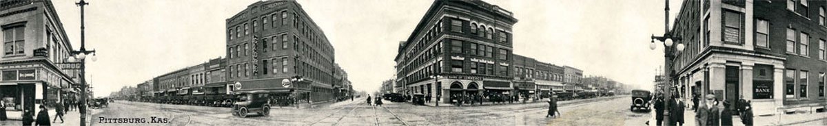 | Intersection of First and Broadway looking West Panoramic Image - 1915 Prosperous Pittsburg Pictorially Portrayed, 1915 |