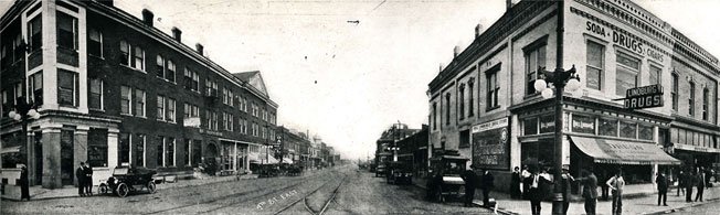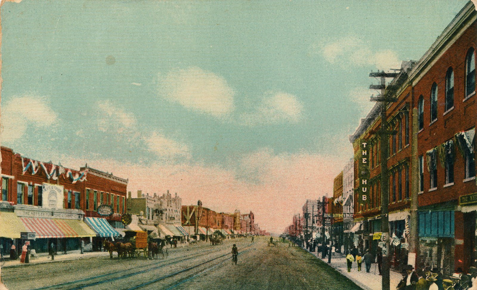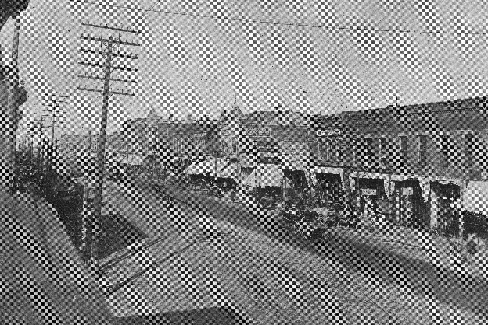 | Eighth and Broadway Looking North postcard - image 1887 photo by Elmer E. Long |