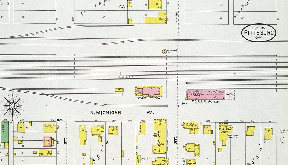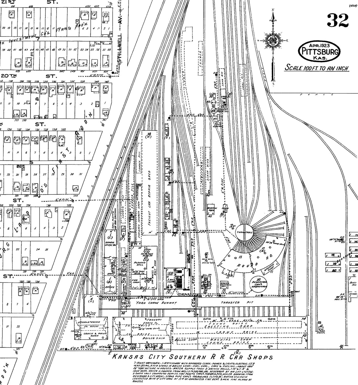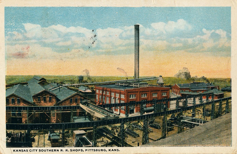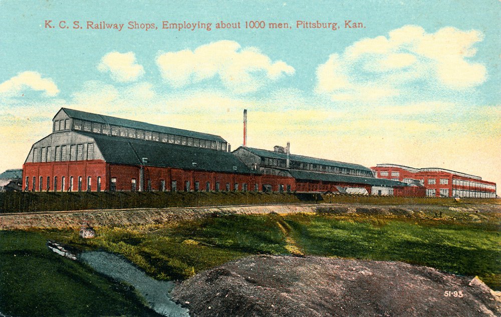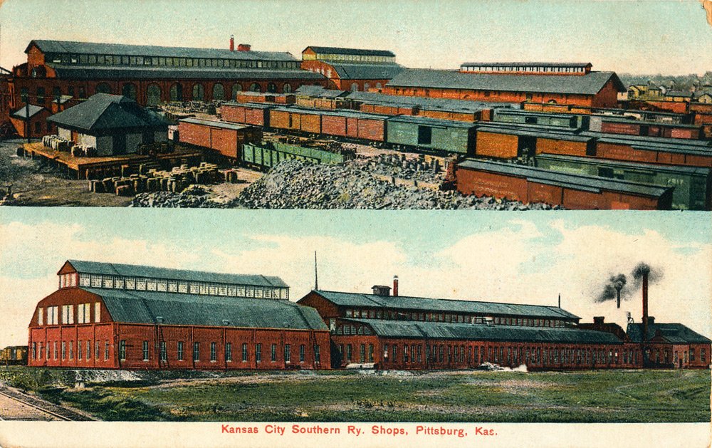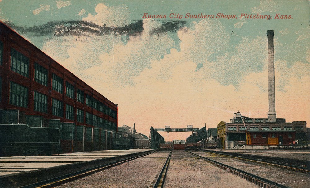 Pittsburg was incorporated into the name of the railroad -- the Kansas City, Pittsburg and Gulf -- when the line built into the city in 1893, and for many years after the road's reorganization into the Kansas City Southern in 1900, the shops here were referred to as the P & G shops.