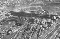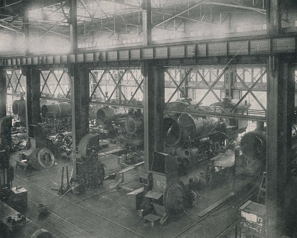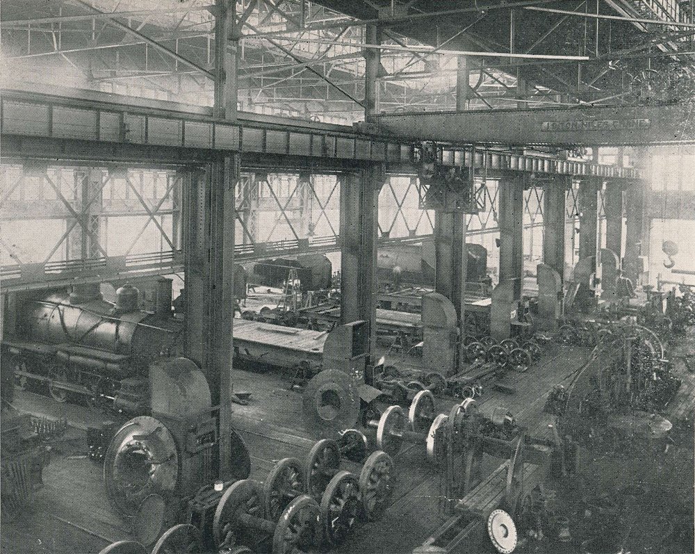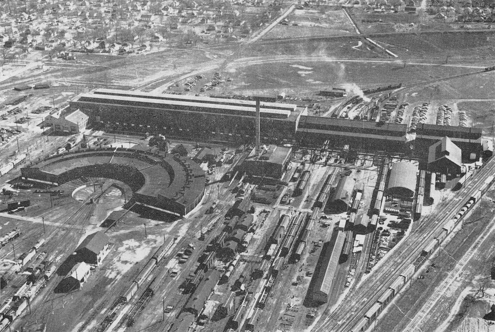 From a small start in 1893, the shops and yards of the Kansas City Southern in Pittsburg have grown until today they cover some three hundred acres. The shops alone occupy approximately one hundred acres and include a diesel repair and servicing facilities completed in 1949 at a cost of more than $350,000.