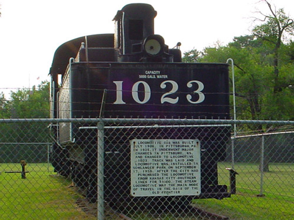 to locomotive 1023. Track was laid and locomotive was installed in Schlanger Park on September 17, 1955, after